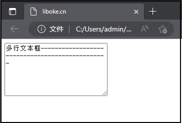 <textarea>多行文本框-----------------------------------------------</textarea> <style type="text/css"> textarea{ width:200px; height:100px; /* 去除默认选中样式 */ outline:none; /* 限定大小,不可改变 */ min-width:200px; max-width:200px; min-height:100px; max-height:100px; } </style>![]()