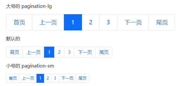 HTML格式: <ul> <!--分页框--> <li> <!--按钮框--> <a href="#"></a> <!--按钮链接--> </li> </ul> =========================================== <ul> 基础类: .pagination 组合类:(单选) .pagination-lg 大号分页 .pagination-sm 小号分页 组合类: .justify-content-center 居中 .justify-content-end 右对齐 =========================================== <li> 基础类: .page-item 分页按钮样式(带点圆角,取消直角) 组合类: .active 选中,高亮 .disabled 禁止,不可点击 =========================================== <a> 基础类: .page-link 链接样式