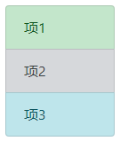 不同颜色的项: <ul class="list-group"> <li class="list-group-item list-group-item-success">项1</li> <li class="list-group-item list-group-item-secondary">项2</li> <li class="list-group-item list-group-item-info">项3</li> </ul>