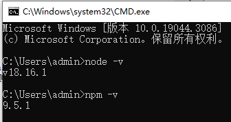 快捷键:win + r 输入 cmd 回车 命令行输入: node -v node版本 npm -v 包管理工具版本![]()